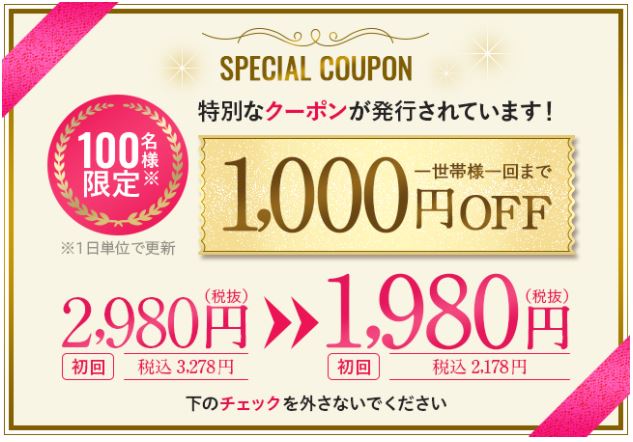 さらに、現在公式サイトでは、毎日100名限定で1,000円割引クーポンを使用することができ、もっとお得にフレイスラボ リンクルクリーム VBを購入できます。