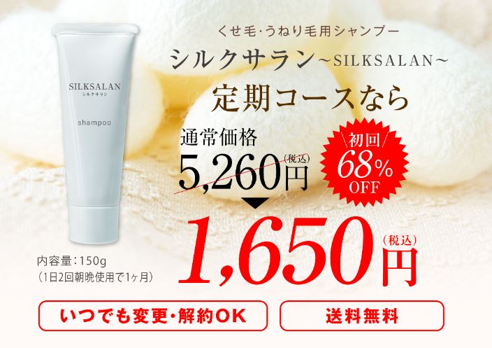 続けて調査したところ、公式サイトから定期コースに申し込むと、シルクサランを初回限定で68%OFFの税込1,650円で購入できることが分かりました!