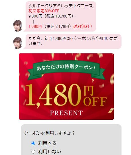 続けて調査したところ、公式サイトから「美トクコース」という定期コースに申し込むと、シルキークリア ミルラを初回限定で税込2,178円で購入できることが分かりました!