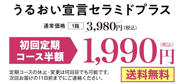 なお、公式サイトから定期コースに申し込むと、うるおい宣言セラミドプラスを初回限定で税込1,990円で購入できてお得です。